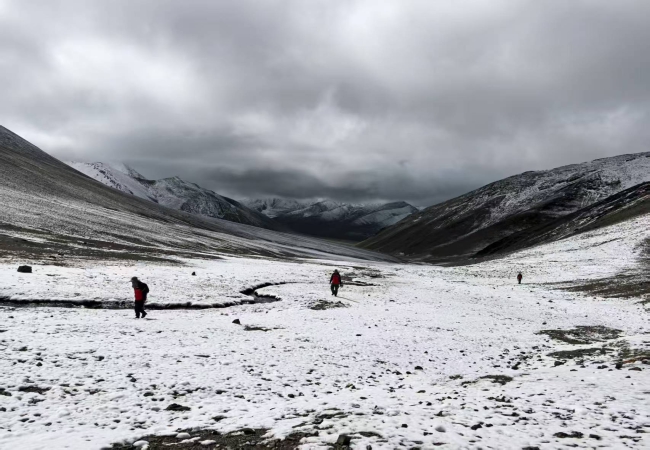 自项目启动以来,项目成员们便面临着诸多超乎想象的困难。首当其冲的有高原“幽灵”的侵袭:高原反应是大家不得不面对的“劲敌”。工作区海拔直逼5300米,稀薄的氧气使每一次呼吸都成为负重,部分成员出现了严重的高原反应,头痛欲裂、呼吸困难、心跳加快。但他们没有一个人退缩,稍作休息后便又投入到工作中。为了缓解高原反应,队员们大多都要服用抗高原反应的药物,晚上休息时枕边也常备一罐氧气瓶以备不时之需。还有魔鬼气候的围剿:郎库里天气多变,刚刚还是晴空万里,转眼间可能就狂风大作、暴雨倾盆、暴雪肆虐,野外采样工作变得异常艰难,团队成员们常常需要在狂风中紧紧抱住采样设备,防止被大风卷走。当穿着御寒的厚衣服每次被不知是汗水还是雨水浸湿时,大家坚毅的脸上总能洋溢出笑容。当然回到营地后一片特效感冒药是必不可少的,毕竟没有人想提前退出战斗。更有“天路”绝境的阻隔:交通的不便更是让项目推进困难重重。工作区道路稀少,大部分地方车辆无法通行,队员们只能背着沉重的装备和样品,在崎岖的山路上艰难前行。从驻地到工作地点,往往需要花费数小时甚至大半天的时间。加之项目工作区远离城镇,物资运输时间长,使得生活保障难度大。
