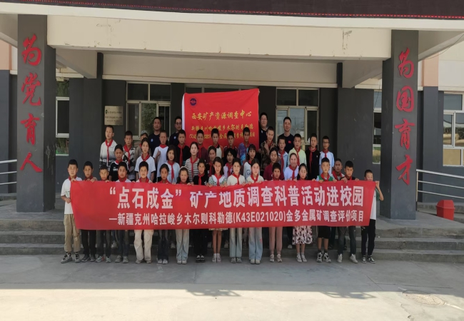 为弘扬科学精神、普及科学知识,提升当地青少年对地质工作的认识,6月27日,中国地质调查局西安矿产资源调查中心新疆克州哈拉峻乡木尔则克勒德(K43E021020)金多金属矿调查评价项目组,走进新疆克州阿图什市哈拉峻乡中心小学,开展矿产地质调查科普进校园活动。