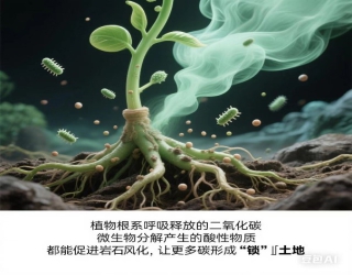 岩石风化是土壤无机碳诞生的起点。雨水溶解空气中的二氧化碳形成弱酸性溶液,与岩石中的钙、镁等金属离子反应,如同一位细致的“雕刻师”,缓慢的“雕琢”着岩石,生成溶解态的碳酸氢盐;这些物质随着水流迁移,在干旱半干旱地区重新沉淀为固态碳酸盐。与此同时,生物活动也为无机碳的积累按下了加速键。植物根系呼吸释放的二氧化碳、微生物分解产生的酸性物质,都能促进岩石风化,让更多碳以无机形式“锁”入土壤。