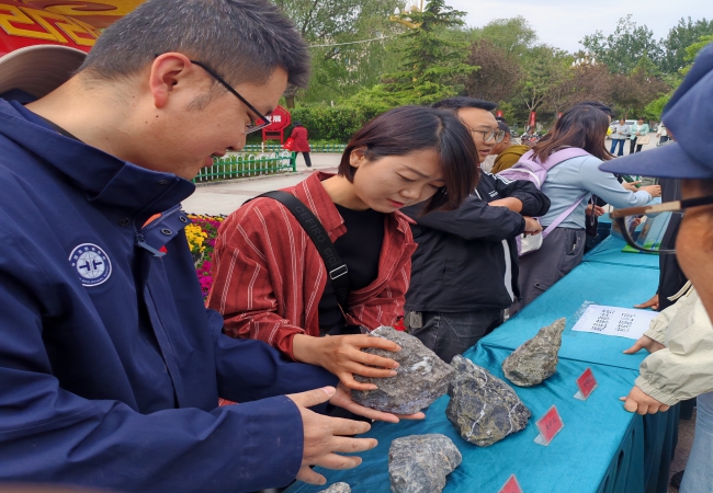 西安矿产中心以西秦岭岷县寨上金矿勘查项目为依托,开展了“解码岩石密码 点亮地质科技之光”为主要内容的科普活动。科普工作者手持激光笔,深入浅出地介绍岩石的形成过程、特征及分类,让观众仿佛穿越时空,见证了地球内部的神奇“魔法”;从坚硬的花岗岩到细腻的页岩,从蕴含化石的沉积岩到充满故事的变质岩,每一块岩石都承载着地球数十亿年的沧桑变迁;并展示了众多项目收集的古生物化石。