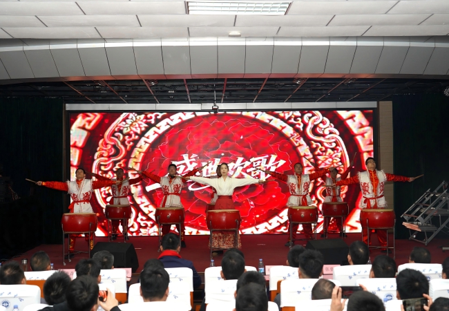 晚会还巧妙地融合了专业与艺术。笛声《看我跃马扬鞭》激越昂扬,书画兴趣小组现场挥毫书写“爱国奉献,开拓创新,艰苦奋斗”优良传统,墨迹未干之处恰是地质人跃马西部的壮志豪情。互动环节“岩心藏智趣·谜底见地学”将专业术语化作趣味谜题,职工们争相竞答,笑声中传递着“地质智慧代代传”的薪火。三句半《后勤保障》以“保障线连着生命线”的朴素台词引起阵阵掌声。